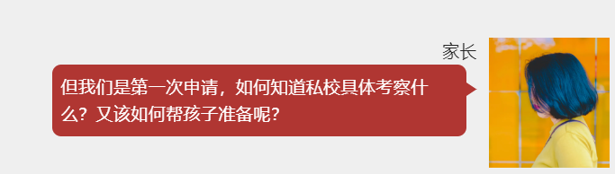 以低龄家庭为例,有的家长经过调查了解到私校会对孩子进行入学测评,但由于孩子年级尚小,还没有开始正式学习,这让没有经验的家长很难想象私校究竟会如何考察孩子,想帮孩子做准备却无从下手。