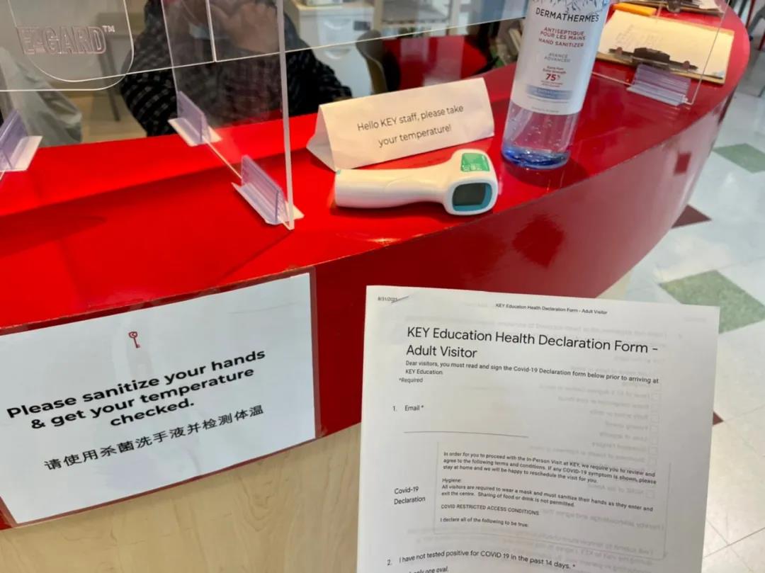 KEY所有的员工均注射过两剂新冠疫苗。然而,为了避免任何可能的风险,我们仍然要求所有员工上班时佩戴口罩,并每天进行体温检查与登记。同时,我们也会建议所有前来接送孩子的家长戴上口罩,共同保护校园健康安全。
