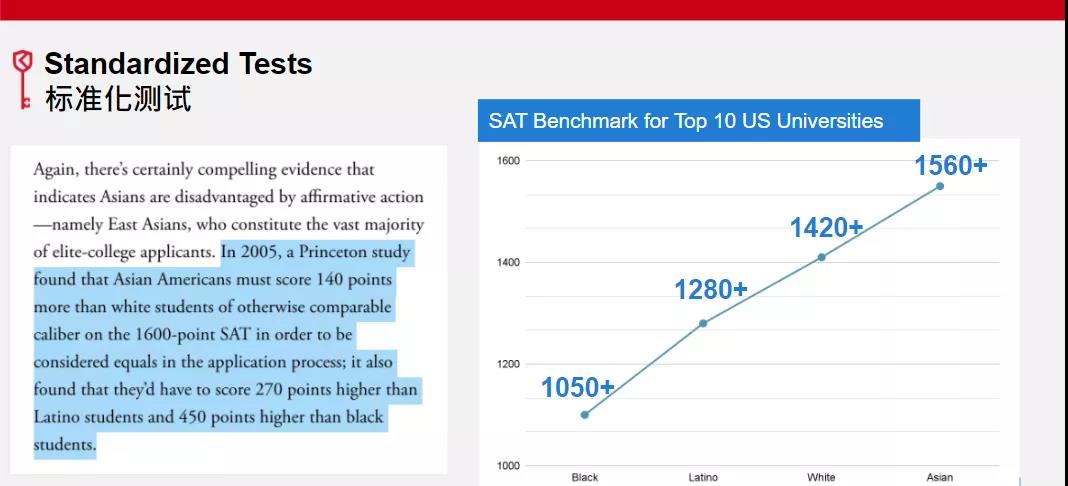 但在这如此高门槛的要求下,仍有近半数的亚裔申请者可以达到顶级名校-哈佛大学的学术招生标准,可见每年同期竞争者学术能力都相当优秀。