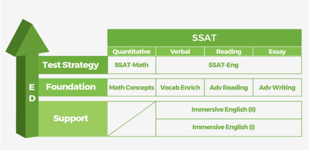 虽然测试的形式不同,但无论是SSAT标化考试,还是私校的校内学术评测,同样是考察学生的词汇、阅读、写作与数学四大能力。由于申请私校的学生普遍都具备优秀的学术水平,因此要在学术测评环节中通过门槛,需要具备高于当前年级水平的实力。