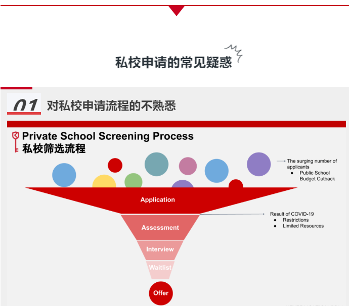 许多家长都是首次申请私校,以为申请无非就是报名缴费后参加考试就可以了。然而,在实际经历过后,家长们才感受到私校筛选机制的严苛。私校首先会通过申请文书,成绩单, 推荐信等材料对申请人进行初步的筛选,通过的家庭之后还要参加“入学测试”、“家庭面试”等多轮筛选,才能有机会真正脱颖而出,最终拿到offer。