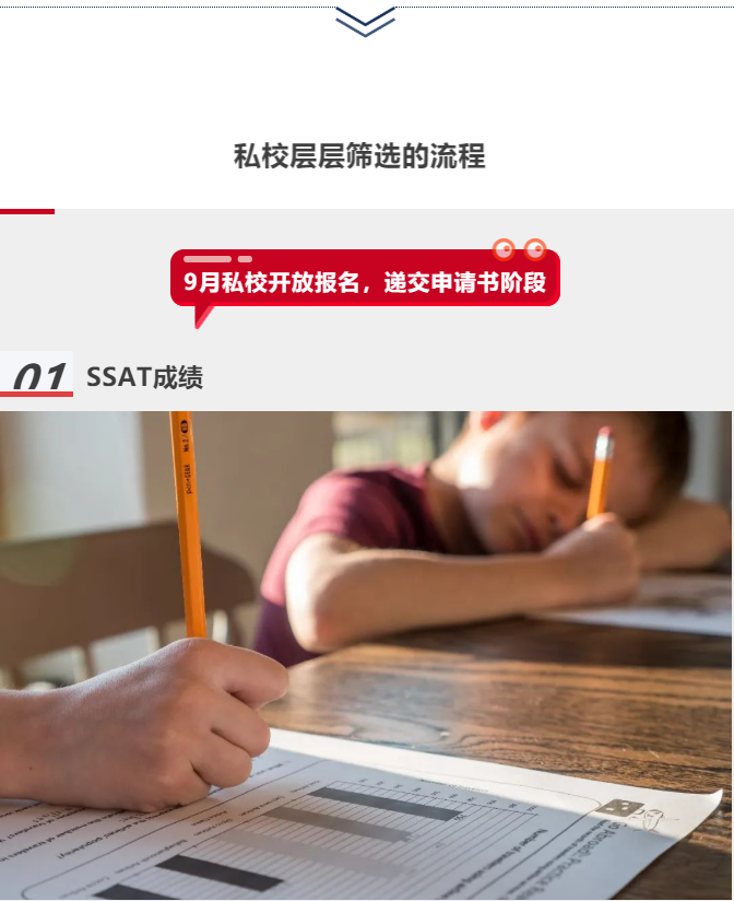 根据KEY过往多年的申请经验,许多家长在第一次申请私校时,往往会因为对私校考核流程的不了解而踏入误区之中。尤其是中高年级的家庭,经常会认为孩子只要在SSAT考试中取得高分就能被私校录取,直到申请季正式开放后,才发现SSAT考试只是私校考察的一个环节,还有更多的内容没有准备到。为此,我们特别准备的今天的内容,为您揭晓中学申请的筛选流程。