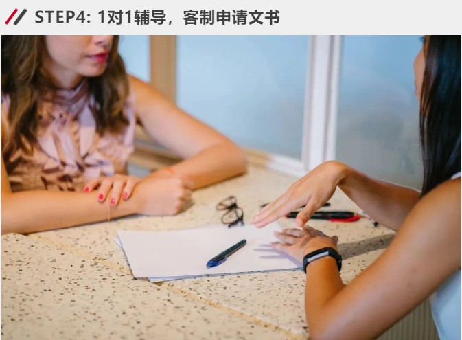 在学生完成独属于自身的文书后, 文书指导顾问将为他们1对1辅导,精修学生文书。同时根据学生目标学校所青睐的特质,找到与学生闪光点媒合的地方,打造针对单一学校的客制化申请文书。