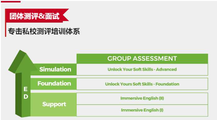 在学生掌握软实力基础后,我们的进阶班课程将根据多年累积的团体评测数据库,实际模拟私校团体测评的情境,进而通过模拟评测练习,帮助学生熟悉校测的环境与流程,充分发挥自身最佳表现。