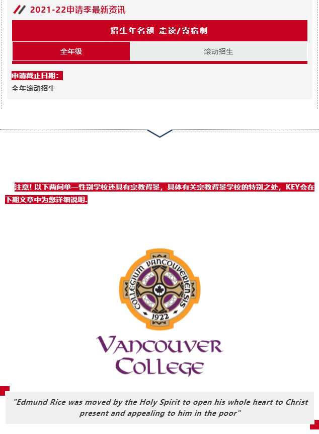 为了更好的帮助家长们了解知名私校的细节,KEY特别推出了“走进大温私校系列“系列文章。分类介绍大温地区的热门私校,同步更新各校今年申请季的招生名额与申请截止日期。在前两期的文章中,我们重点介绍了大温地区的混合性别私校,还没有阅读的家长可以点击下方链接浏览: