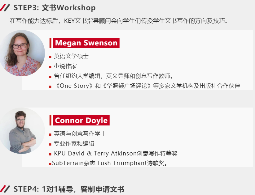 想要写出一篇优秀的文书,学生不仅需要具备出色的写作能力,同样需要对自己本身的特质、以及所申请学校的期望有着充分的了解。在KEY, 我们不同部门的团队将紧密合作,共同协助每位学生打造专属文书。