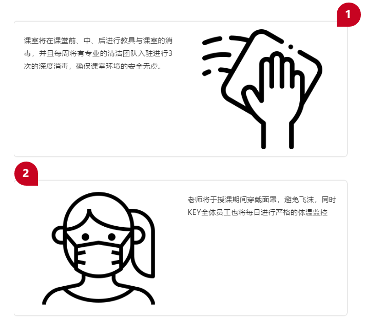 然而线下课程并不是说开就开那么容易的,KEY将我们的学生、家庭与员工的健康摆在第一优先次序,因此KEY团队致力于通过严谨的防疫规范打造出安全无虞的课室环境。