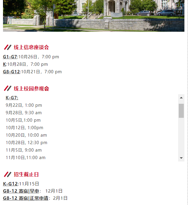 对于想获得更加私人化体验的学生和家长,部分学校也提供了私人参观的预约,帮助申请家庭有针对性的获得资讯。