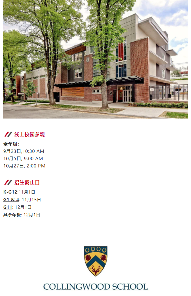 于此同时,部分私校如York House School和Mulgrave都重新启用了线下校园参观。申请家庭可在学校代表的带领下进入校园、感受学习氛围、参观教学设施并与招生人员交流对谈。然而,出于安全考量,私校对于校园参观的人数有着严格的要求,名额有限,有需求的家长建议您立刻前往学校官网预约。
