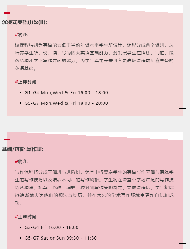 优秀的写作能力是完成高质量文书的基础。在KEY,我们会根据学生在入学评测中的表现,安排他们参加符合当前能力水平的沉浸式英语课程(Immersive English) 或基础/进阶写作课程(Foundation/Advanced Writing),进行有针对性的提升,确保他们拥有撰写合格文书的能力。