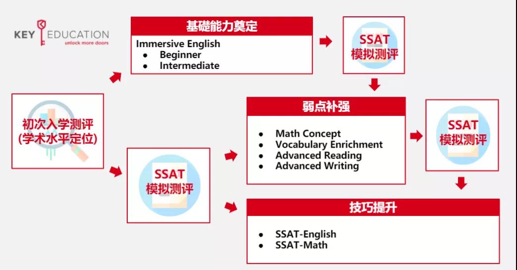 对照时间节点目前距离SSAT与私校学术测评考试时间剩下不到6个月的时间,为了帮助申请者在有限的时间内全方面提升学术水平,KEY设计出了一套针对SSAT提分的教学体系,在过去许多的学生都藉由KEY的课程有效的提升了SSAT的成绩,成功获得了心仪学校的录取。