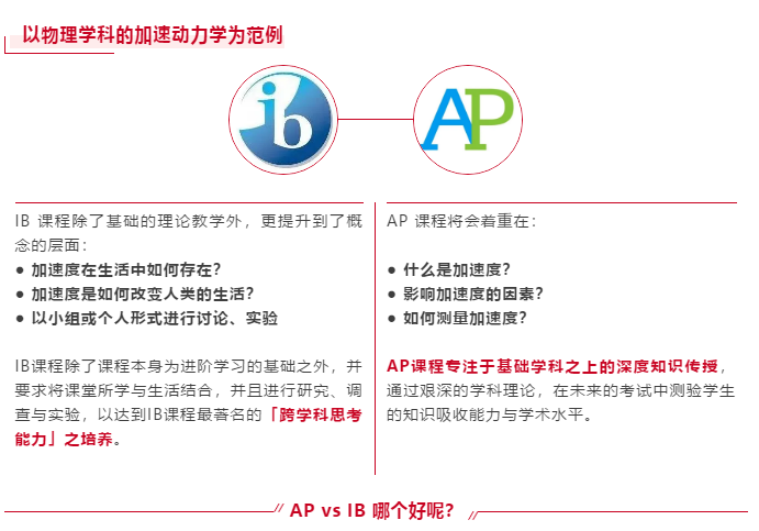 虽然AP与IB皆为教育界认可具有较高学术水平的教育项目,但两者的教学主张大为不同。