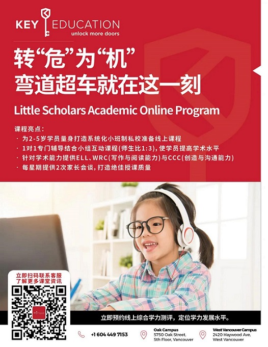 在这个前所未见的危机之中,KEY理解每位家长在这个非常时节实在是非常不容易,然而生活中总是有着许多的挑战在前头等着我们,而如何保持乐观在危机之中看见机会,迅速的制定一套应对的私校申请计划,就成为了今年私校申请的一大学问。